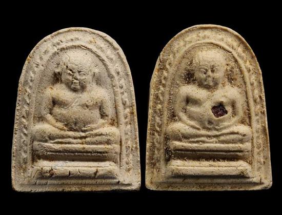 100 / พระสังกัจจายน์ เนื้อผงโรยเกศาฝังพลอย สูงขนาด 1 นิ้ว สวยเดิมๆทั้ง 2 องค์ไม่ทราบที่ |