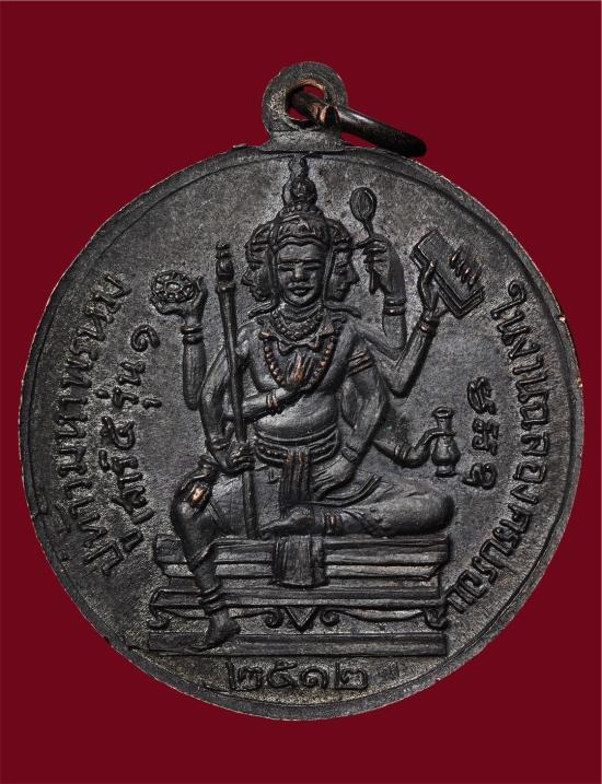 แดงเดียว 100 เหรียญ รุ่นแรก หลวงพ่อจำลอง หลังพระพรหม วัดเจดีย์แดง ปี 2512 จังหวัดอยุธยา