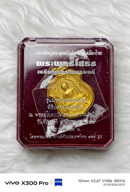 เคาะเดียวแดง เหรียญอาร์ม หลวงพ่อโสธร รุ่น มหามงคลย้อนยุค ฉลุลายยกองค์ย้อนยุค พ.ศ.๒๔๖๐ เนื้อบรอนซ์นอกชุบทอง เลข 1445 งานจิวเวอรี่ สวยๆไม่ผ่านการใช้
