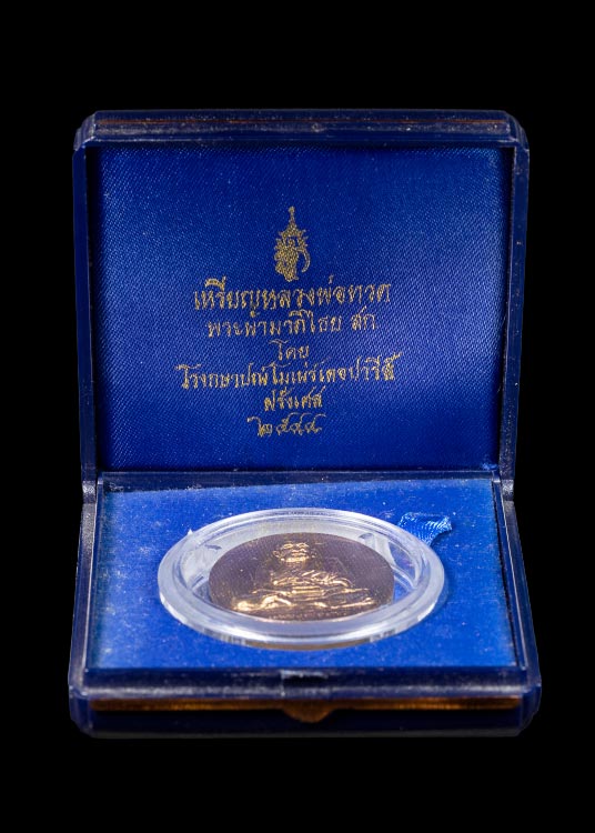 หลวงปู่ทวด หลังพระนามาภิไธย สก. เนื้อบรอนซ์ (ผลิตจาก โรงกษาปณ์ โมเน่เดอร์ปารีส) มีกล่อง