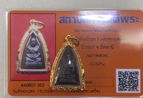 ((( บัตรสภาพสวย))) พระหลวงปู่ทวด พิมพ์กลีบบัว รุน 1 เนื้อทองเหลือง ปี 2507 เลี่ยมทองพร้อมใช้ |