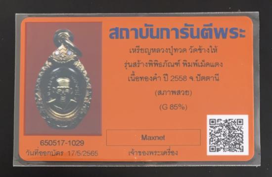 ((( บัตรสภาพสวย ))) เหรียญเม็ดแตง รุ่นสร้างพิพิธภัณฑ์ เนื้อทองคำ ปี 2558 |