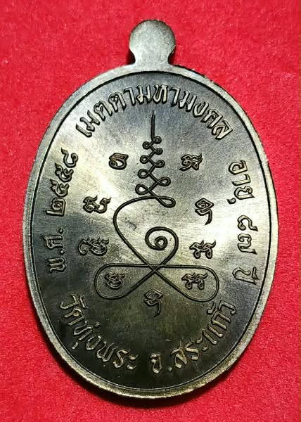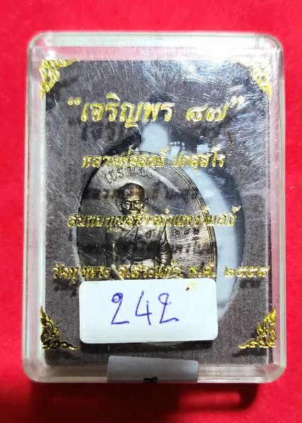 เหรียญเจริญพรบน 87 หลวงพ่อสนธิ์ วัดทุ่งพระ จ.สระแก้ว เนื้อชนวน หมายเลข 242 กล่องเดิม |