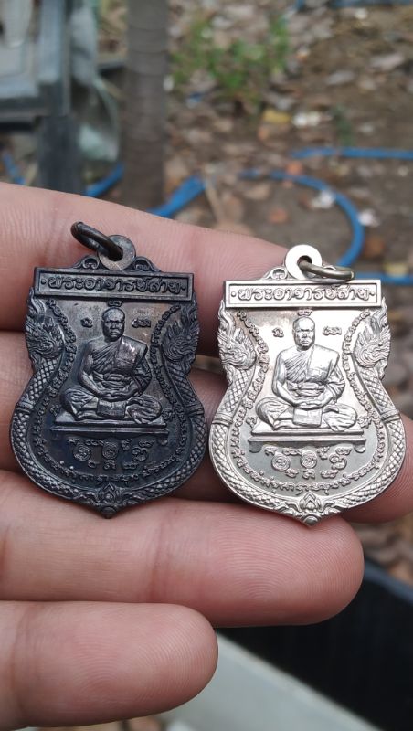 เล่าว่า จัดสร้างในปี 2543 ซึ่งถือว่าเป็นเหรียญในรูปแบบเสมา ด้านหน้าเป็นรูปเหมือนของท่านนั่งเต็มองค์ ด้านหลังเป็นพระนารายณ์ออกศึก รุ่นแรกและรุ่นเดียวเท่านั้น โดยสมัยนั้น พระครูธวัชภัทราภรณ์ หรือพระอาจารย์ต๊ะ อดีตเจ้าอาวาสวัดช้าง จัดสร้างและออกทุนให้ (ข้อมูลจากอาจารย์ท่าน)