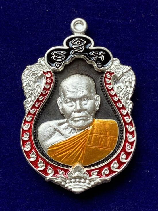 เคาะเดียวแดง หลวงปู่บุดดา รุ่น บูชาครู เนื้อ นวะหน้ากากเงิน ขอบเงินลงยา