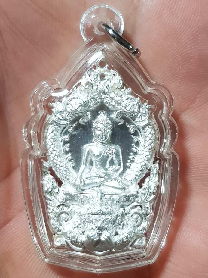 "วัดใจ" เหรียญเสมาฉลุยกองค์ พระพุทธสิหิงค์ วัดพระมหาธาตุวรมหาวิหาร เนื้อเงินขัดเงาบางส่วน หมายเลข ๓๐๕ สภาพสวยเลี่ยมกันน้ำรักษาผิวพร้อมกล่องเดิม