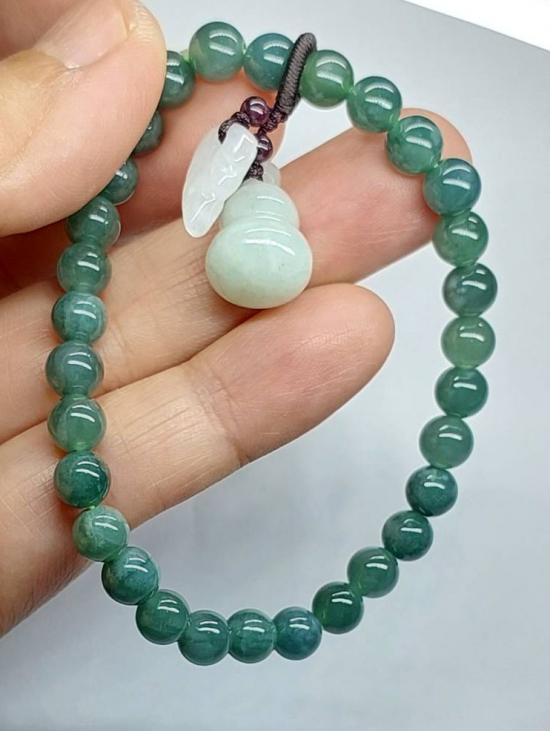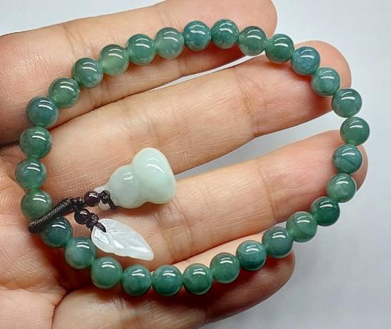 ***วัดใจ***สร้อยข้อมือ หยก พร้อมจี้ เม็ด 6 มิล สวยๆ |