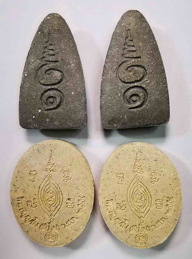 ( เคาะเดียว 4องค์ สวยๆครับ ) พระเนื้อผงพิมพ์หลวงปู่ทวดรูปไข่ + พระเนื้อผงพิมพ์หลวงปู่ทวดเตารีด พิธีเปิดโลก 2 หลวงพ่อลำใย สัญญโม วัดสะแก จ.อยุธยา ปี 2554