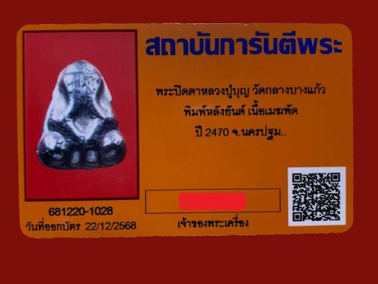 สวยสุดๆ เริ่มที่เคาะแรก ! ปิดตาหลวงปู่บุญ วัดกลางบางแก้ว เนื้อเมฆพัด หลังยันต์ ปี 2470 |