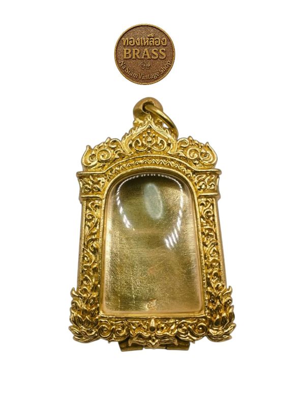 ตลับพระ ทองเหลืองแท้ งานดิบ ไม่ชุบ หลังปิดลายพระพุทธรูปนูนต่ำ ขนาดตามรูป