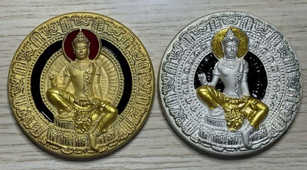จตุคราม รามเทพ รุ่นเจ้าสัวยุค8 เหรียญ บาตรน้ำมนต์ 5.5ซม จำนวน 4 องค์ 4 เนื้อ สวยๆ 1.นวะโลหะหน้ากากเงิน 2.โลหะ2K 3.โลหะพ่นทรายทองลงยา 4.โลหะพ่นทรายเงินลงยา มีกล่องเดิม |
