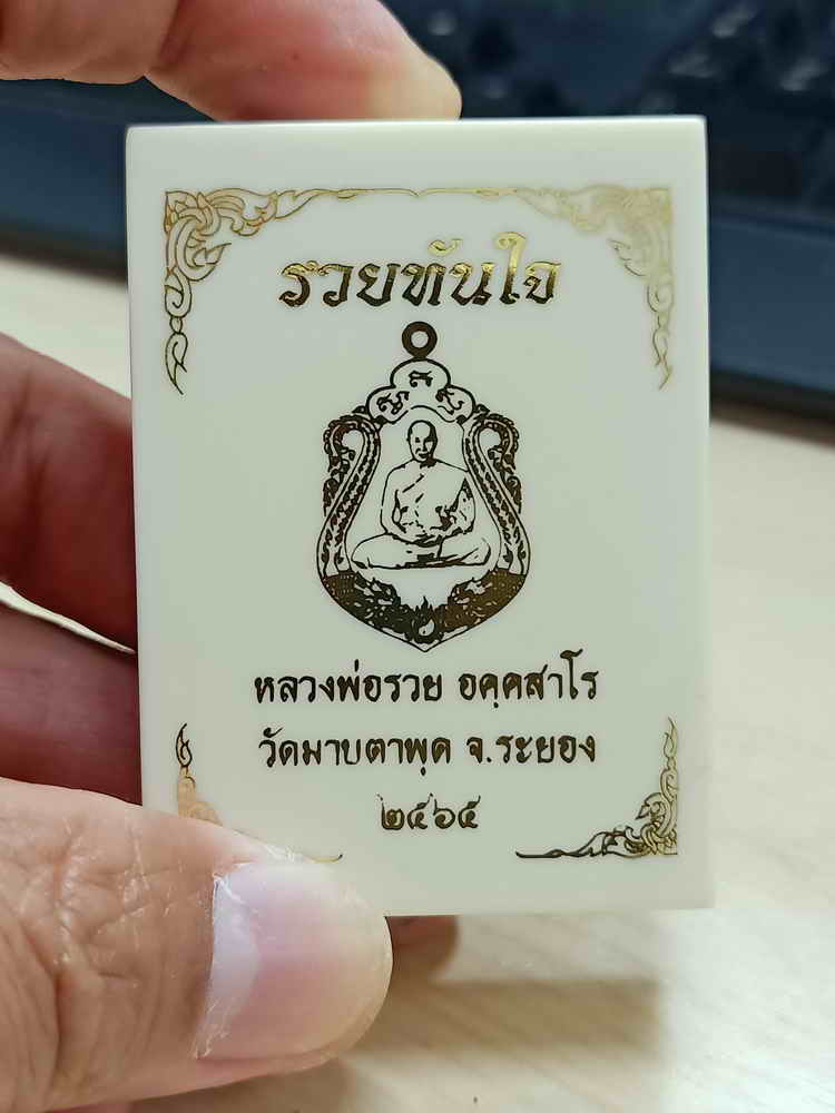 วัดใจ 100 เหรียญเสมารวยทันใจ หลวงพ่อรวย วัดมาบตาพุด จ.ระยอง ปี 2565 ชนวนโบราณ ลงยาแดง ขอบ จีวร หมายเลข 122 กล่องเดิม |