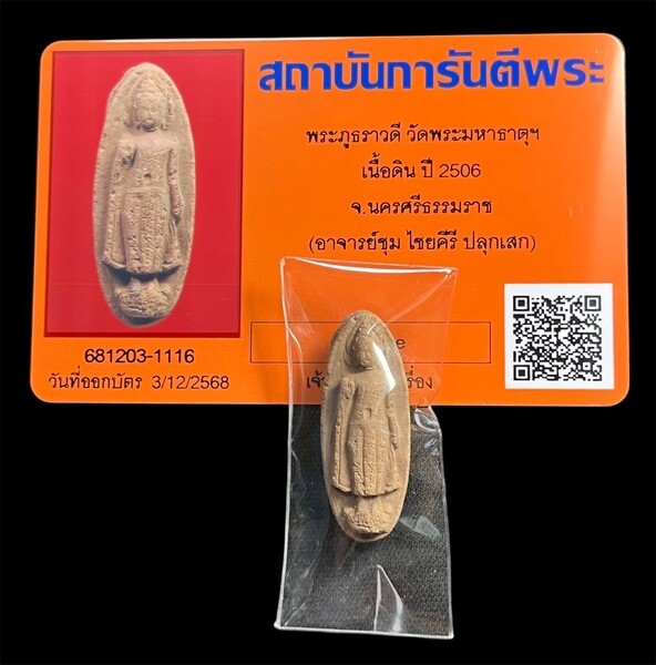 พระภูธราวดี วัดพระมหาธาตุฯ เนื้อดิน ปี 2506 จ.นครศรีธรรมราช (อาจารย์ชุม ไชยคีรี ปลุกเสก) สภาพสวยเดิม พร้อมบัตรรับรอง