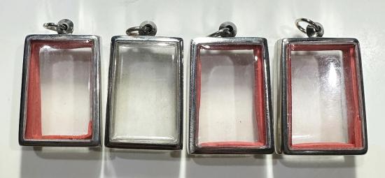 ตลับมือสองสแตนเลสทรงสี่เหลี่ยมใส่สมเด็จทั่วไปได้ 4 ใบแบบเปิดหน้า-หลังขนาด 4 x 3 ซม. |
