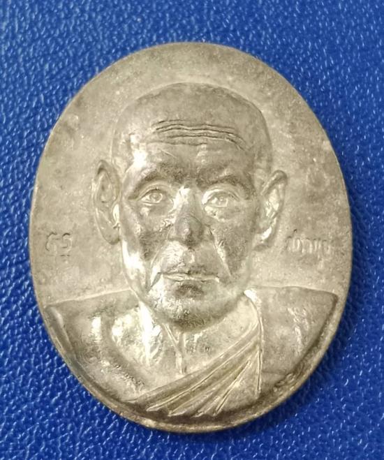 เหรียญหล่อรูปเหมือน หลวงปู่เสาร์ กันตสีโล เนื้อเงิน ถวายวัดดอนธาตุ ตำบลทรายมูล อำเภอพิบูลมังสาหาร จังหวัดอุบลราชธานี