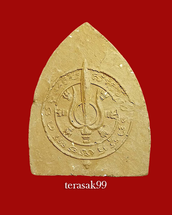 พระเนื้อดินพิมพ์ปรกโพธิ์เล็ก หลวงพ่อเต๋ วัดสามง่าม จ. นครปฐม พ.ศ.2507 ด้านหลังยันต์สามง่าม