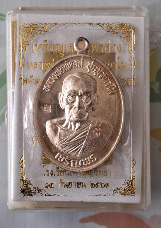 เหรียญเจริญพรล่าง 63 หลวงพ่อพัฒน์ ปุญฺญกาโม เนื้อทองแดงพรายเงิน เลข ๕๐๓๙ สวยๆ กล่องเดิม