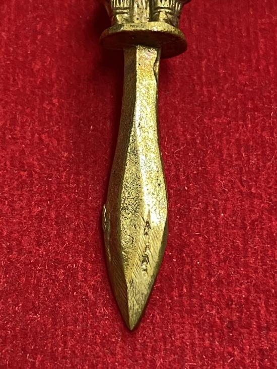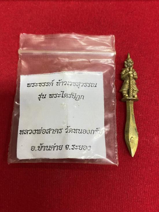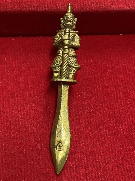 พระขรรค์ท้าวเวสสุวรรณ รุ่น พระไตรปิฎก จัดสร้างปี 2544 หลวงพ่อสาคร วัดหนองกรับ เนื้อทองเหลือง ในเล่มมี 2 หน้า หน้าเทพและหน้ายักษ์ สวยเดิม หายาก ซองเดิมจากวัดครบ น่าสะสม! |