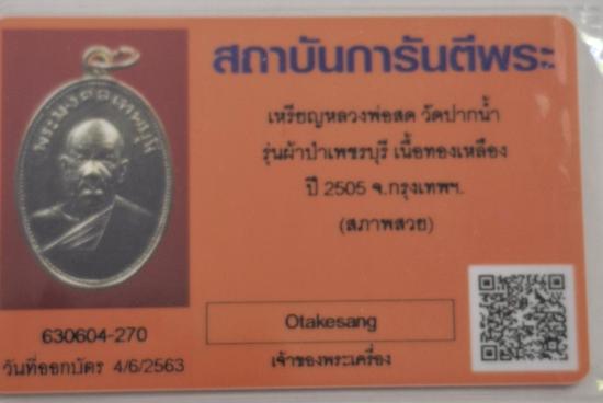 บัตรสภาพสวย เหรียญหลวงพ่อสด เนื้อทองเหลือง รุ่นผ้าป่าเพชรบุรี ปี2505