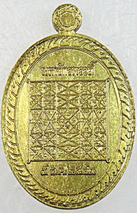 เหรียญพระพุทธนิมิตพิชิตมาร (เหรียญมหาจักรพรรดิ์) วัดหน้าพระเมรุ จ.อยุธยา ปี พ.ศ.2542 หลังยันต์มหาจักรพรรดิตราธิราช เนื้อทองฝาบาตร |