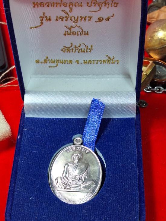 ((วัดใจ))เหรียญรูปไข่หลวงพ่อคูณ (เต็มองค์) วัดบ้านไร่ ปี 2557 รุ่นเจริญพร19 เนื้อเงิน หมายเลข 453