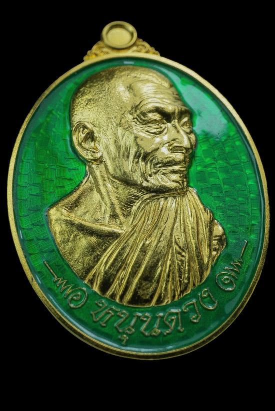 วัดใจ เหรียญหนุนดวง หลวงปู่ศิลา เนื้อทองลำอู่ชุบทอง24k ลงยาเขียว เลข 1593 (แยกชุดกรรมการ) สวยมากๆค่ะ