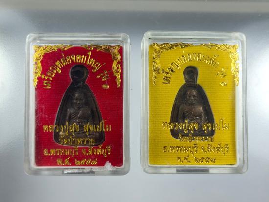 วัดใจ *** เหรียญหล่อจอบใหญ่ - จอบเล็ก รุ่นแรก เนื้อนวโลหะ หลวงปู่สุข วัดป่าหวาย จ.สิงห์บุรี ปี 2557