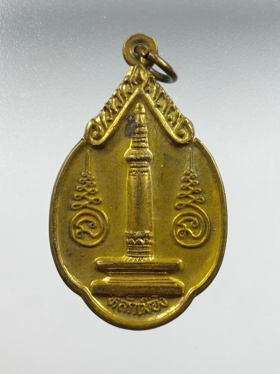 วัดใจ *** เหรียญหลักเมือง เนื้อทองฝาบาตร อำเภอชุมพวง จังหวัดนครราชสีมา 2547 ที่ระลึกในงานพิธีตั้งเสาหลักเมือง