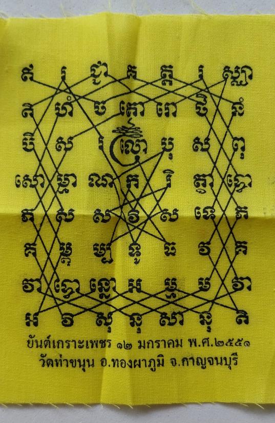 ผ้ายันต์เกาะเพชรหลวงพ่อเล็ก วัดท่าขนุน ปี51สีเหลือง |
