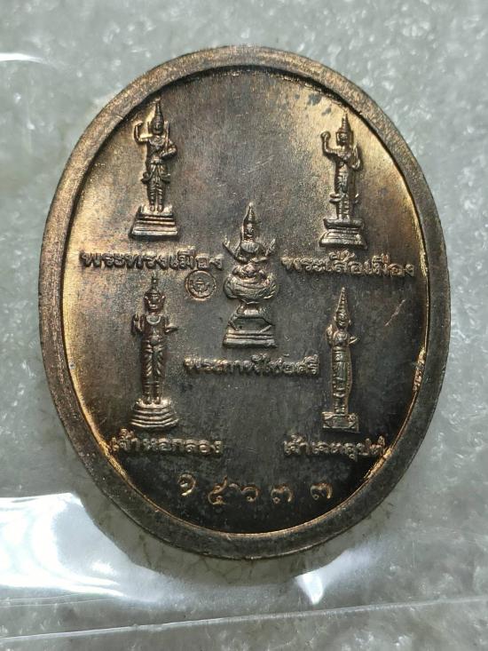 เหรียญหลักเมืองหลังเทพารักษ์ รุ่น 225 ปี องค์พระหลักเมือง ปี2550 เนื้อนวโลหะ เลี่ยมกันน้ำพร้อมบูชา |