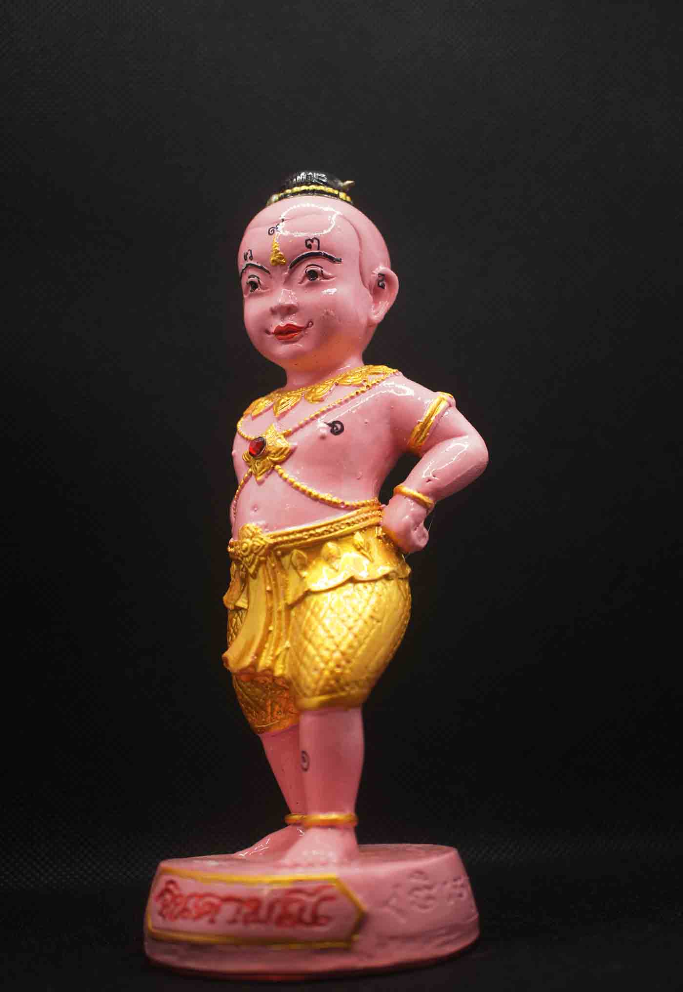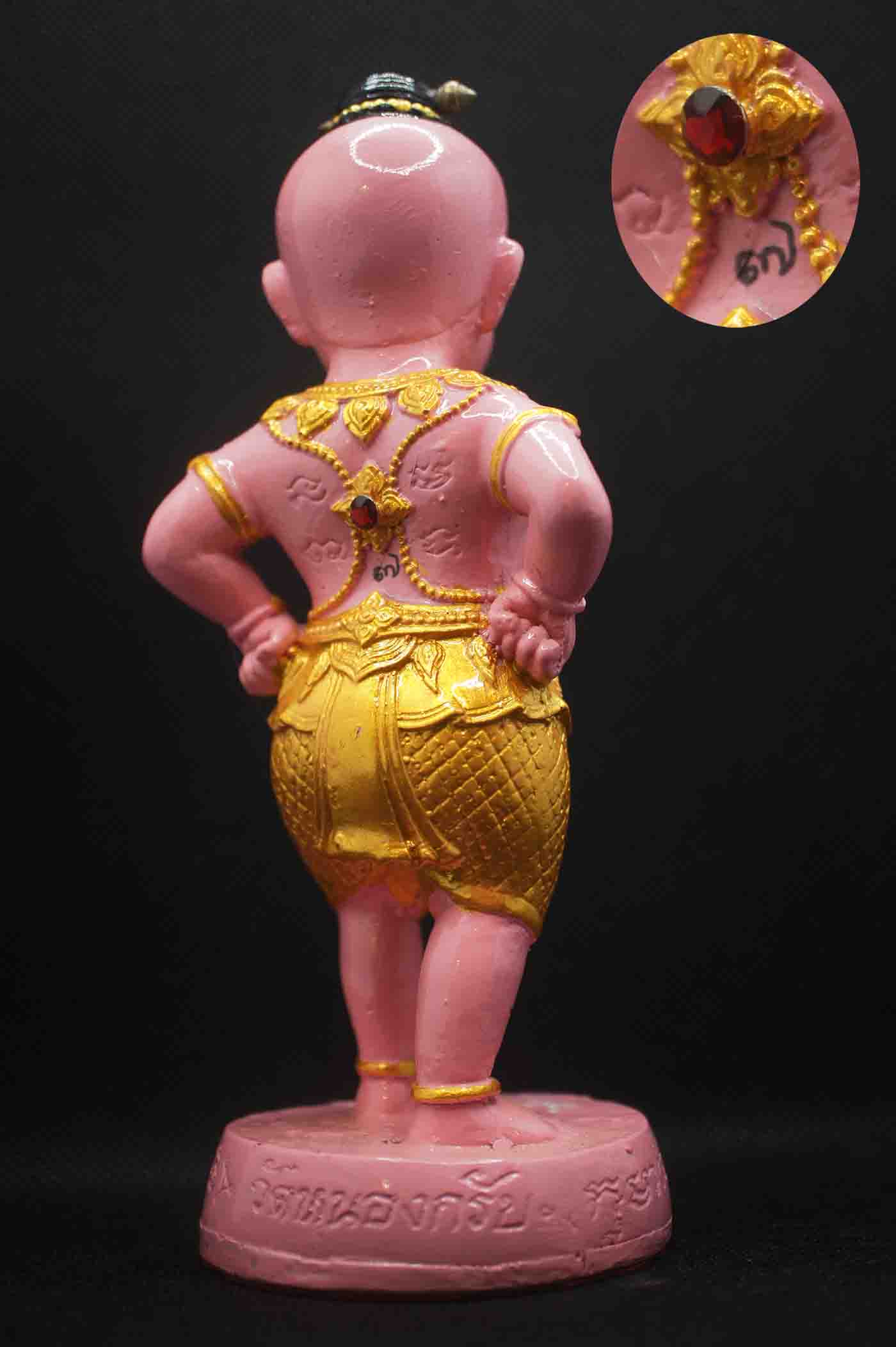 1 ใน 100 องค์ **** กุมารทอง จินดามณี รับทรัพย์ พ่นสีชมพู ขนาดบูชา เนื้อเรซิ่น หลวงพ่อสาคร วัดหนองกรับ ปี 2569 ( ปิ่นเงินแท้ ) ฝังพลอยสีแดง ( หน้า-หลัง ) ทาทอง เพนท์สี ชมพู ฝังลูกอม มวลสาร ตระกรุตคู่ เงิน+ทองแดง จารมือทั้งตัว หมายเลข ***65*** สร้าง 100 องค์ พิธีปลุกเสก ณ โบสถ์ วัดหนองกรับ ระยอง ปลุกเสก โดย เกจิคณาจารย์ สายหลวงพ่อสาคร วัดหนองกรับ จำนวน 11 รูป สร้างน้อย 68 ตน ( จากจำนวนการสร้าง 168 องค์ แบ่งเป็นสีชมพู เลข 1-100 สีไข่ไก่ 101-168 ) ( ขนาดความสูง 6.5 นิ้ว กว้างจากฐาน 2.7 นิ้ว )