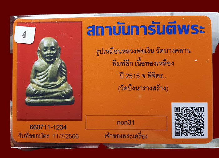 สวยแชมป์ครับ/// หลวงพ่อเงินวัดบึงนาราง ปี 15 เนื้อทองเหลือง +บัตร**1234**