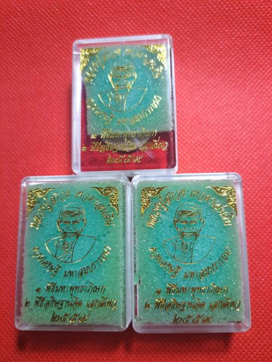 พระผงดวงเศรษฐี มหาสมปรารถนา หลวงปู่สรวง เทวดาเล่นดิน ฝังจีวรหลวงปู่สรวง และจีวรหลวงปู่หมุน วัดบ้านจาน จัดสร้างปี 2559 เคาะเดียว 3 องค์