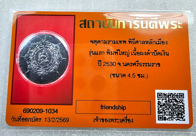พระผงสุริยัน-จันทรา เนื้อไม้ดำปัดเงิน ปี2530หายากสุดๆ พร้อมบัตร