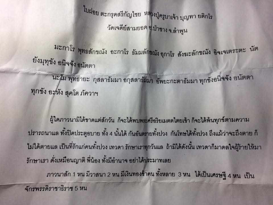 ตะกรุดสรีกัญไชย ครูบาเจ้าบุญทา วัดเจดีย์สามยอด อ.ป่าซาง จ.ลำพูน