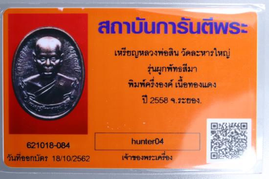 เหรียญหลวงพ่อสิน วัดละหารใหญ่ รุ่นผูกพัทธสีมา พิมพ์ครึ่งองค์เนื้อทองแดง ปี2558 พร้อมกล่องเดิม |