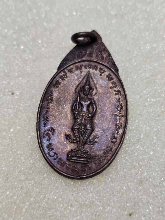 เคาะเดียวแดง เหรียญพระสยามเทวาธิราช วัดป่ามะไฟ ปราจีนบุรี ปี 2518 เนื้อทองแดงพิมพ์เล็ก |