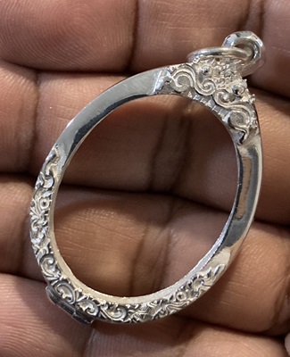 ตลับเงินปัดเงา ทรงรูปไข่ ขนาดขอบใน (กxสxหนา) (2.5 x 3.2 x 0.6)Cm.