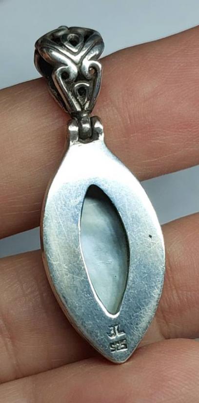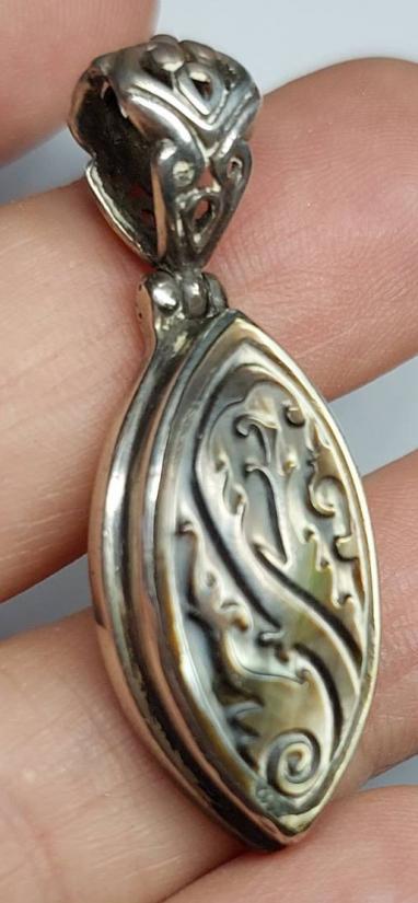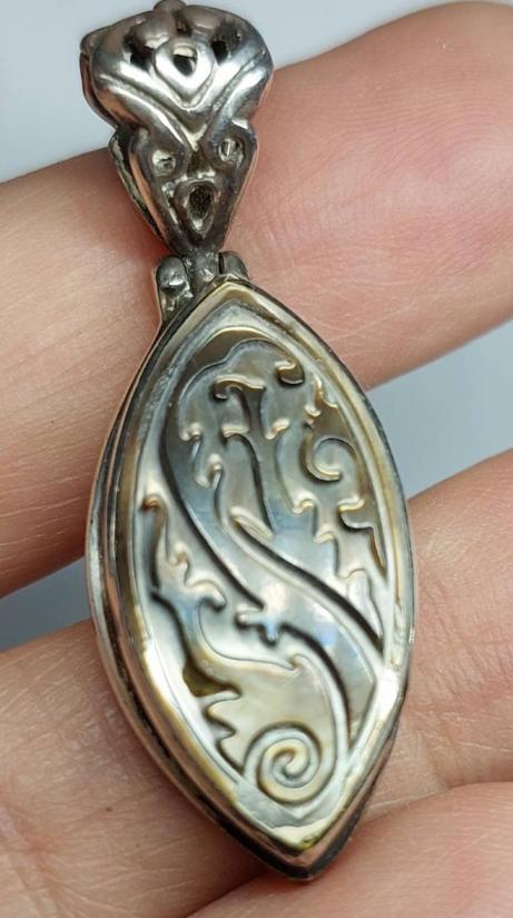 จี้เปลือกหอยมุกดำ แกะสลัก ตัวเรือนเงินแท้ silver sterling 925 งานนอก |