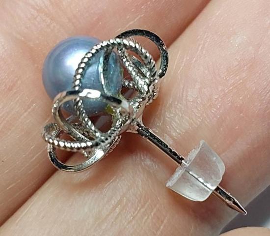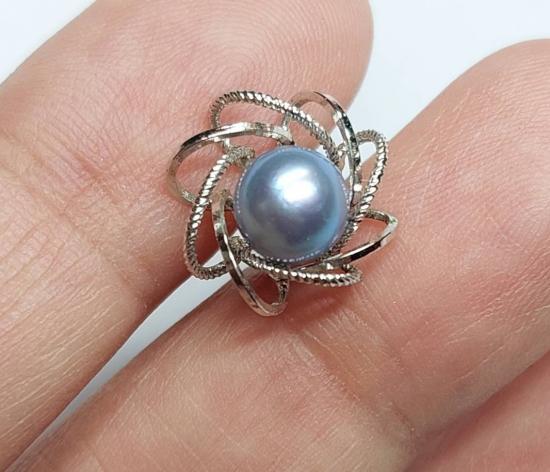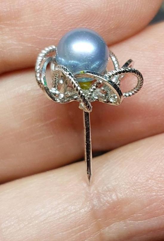 เข็มกลัดเนคไทไข่มุกสวยๆ ตัวเรือนเงิน งานญี่ปุ่น สามารถดัดแปลงเป็นหัวแหวน / จี้ /ต่างหูได้ แป้นหลังไม่มีเลยใข้แป้นต่างหูแทน