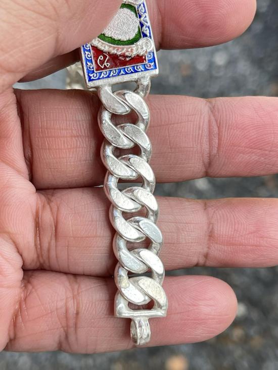 หลวงพ่อรวย วัดตะโก จ.อยุธยา เลสข้อมือ รุ่น เลื่อนสมณศักดิ์ ปี59 เนื้อเงินลงยา ขนาด4บาท