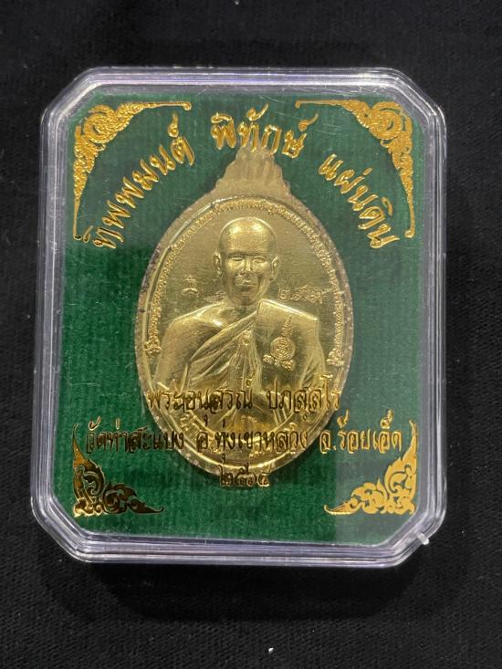 เหรียญทิพพมนต์ พิทักษ์แผ่นดิน พระอาจารย์ต้อมวัดท่าสะแบง เนื้อฝาบาตร เลข 3 หลัก หมายเลข 293 พร้อมกล่อง