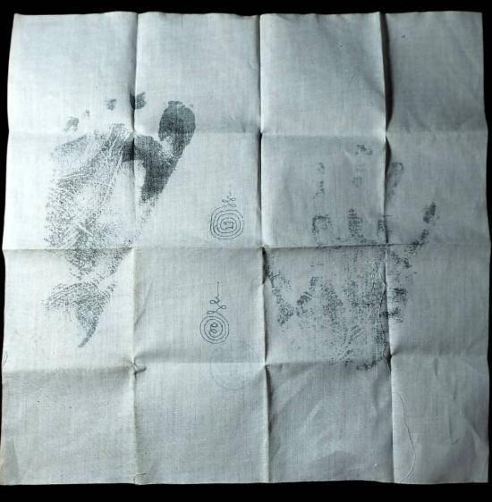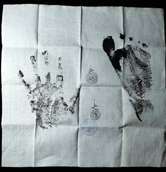 ผ้ายันต์ รอยมือ รอยเท้า หลวงปู่สุภา วัดเขารัง จ.ภูเก็ต ขนาด 36.5x36.5cm