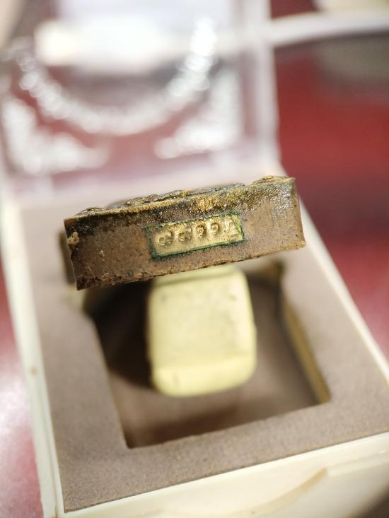 พระขุนแผนบรรจุกรุ หลวงพ่อสาคร เนื้อว่านเสน่ห์จันทร์ หลังตะกรุดเงินคู่ พลอยเสก หมายเลข 9911 กล่องเดิม |