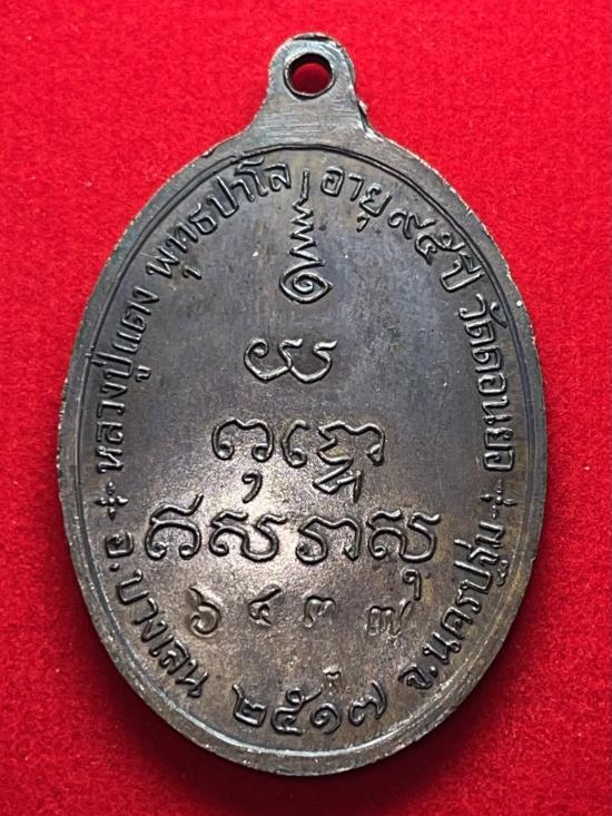 เหรียญหลวงปู่แตง วัดดอนยอ จ.นครปฐม ปี 2517 เนื้อทองแดง (หมายเลข ๖๔๓๗)