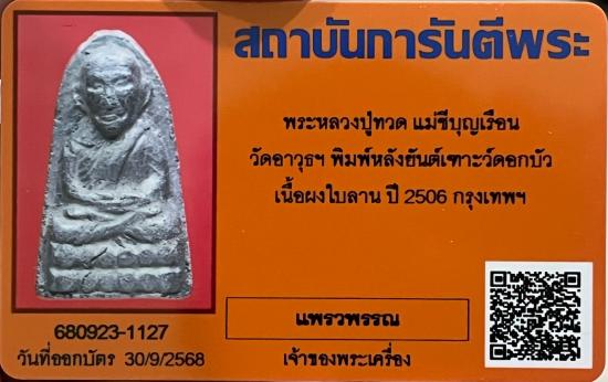 พระหลวงปู่ทวดยันต์เทาะดอกบัวนิยมเนื้อผงใบลานปี2506.พระสภาพสวยผิวพรรณมาเดิมๆสมบูรณ์ดีคะและยันต์เทาะดอกบัวพบเจอน้อยมาก.พร้อมบัตรตรวจสอบเรียบร้อยดีคะ