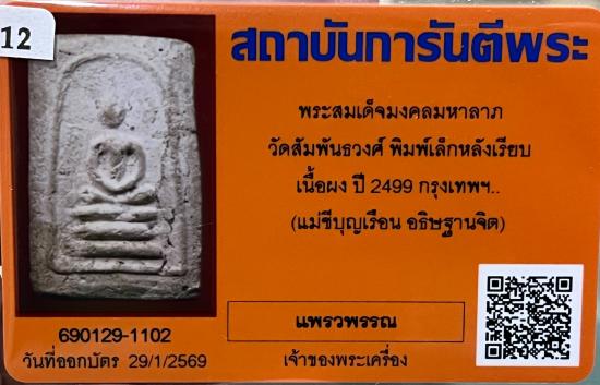 พระมงคลมหาลาภพระสมเด็จพิมพ์เล็กเนื้อผงพรหมโสฬรปี2499.คุณแม่บุญเรือน