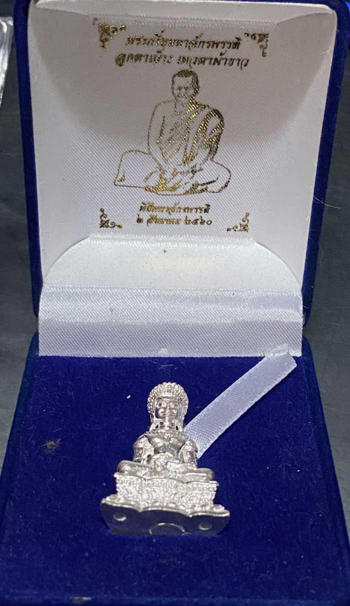 พระกริ่งจอมสุรินทร์ เนื้อเงิน หลวงตาเบ๊าะ กระท่อมบัวเชด จ.สุรินทร์ พิธีมหาจักรพรรดิ์ ตอกโค๊ต หมายเลข 14 พร้อมกล่องเดิม สวยมาก