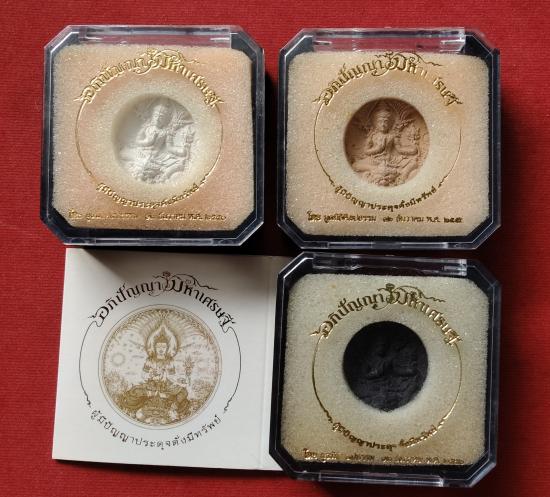 ขออนุญาติท่านอาจารย์เฉลิมชัยโฆษิตพิพัฒน์ขอเปิดแบ่งปันอภิปัญญามหาเศรษฐีพิมพ์เล็กสภาพสวยงามมาๆๆเนื้อผงว่านพุทธคุณขนาด3.5เซนครบ3สีมีสีดำขาวและน้ำตาลพุทธศิลป์สวยงามมากน่าสะสมครับนำมาแบ่งปันครับของดีน่าสะสมกล่ิงเดิมครบชุดครับ