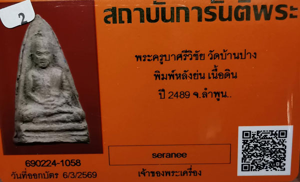 พระครูบาศรีวิชัย วัดบ้านปาง พิมพ์หลังย่น(มีหน้าตา) เนื้อดิน ปี2489 จ.ลำพูน + บัตรG-pra สภาพสวยเดิมค่ะ |